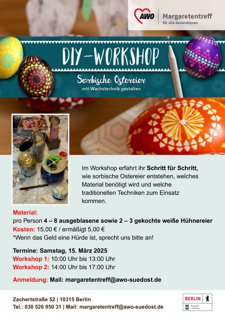 15. März im „Margaretentreff“: Workshop „sorbische Ostereier gestalten“