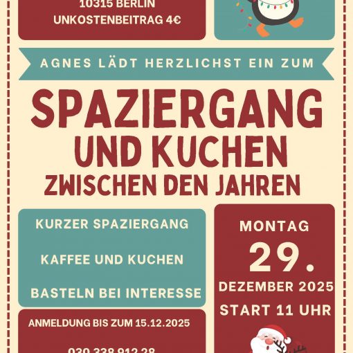 29. Dezember: Spaziergang zwischen den Jahren mit AGNES Herzliche Einladung zu einem Spaziergang zwischen den Jahren mit unserem Projekt AGNES! Im Anschluss […]