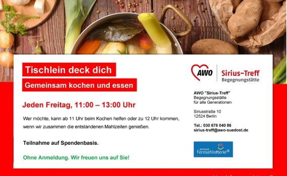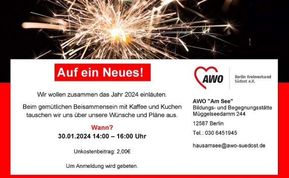 30.Januar: Begrüßung des neuen Jahres im AWO „Am See“ Auf ein Neues: Am 30. Januar wird im AWO „Am See“ bei Kaffee und Kuchen das neue Jahr begrüßt, herzliche Einladung!