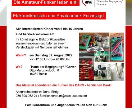 Amateurfunker laden ein Elektronikbasteln und Amateurfunk-Fuchsjagd klingt spannend für dich? Dann bist du bei uns genau richtig: Die Amateurfunker im Haus der Begegnung Fennpfuhl laden ein zum Tüfteln. Kommt gern vorbei! Das Material spendieren die Funker des DARC – herzlichen Dank!