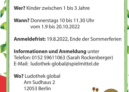 Einladung zur inklusiven Spielgruppe Elternbegleiterin Sarah lädt im September und Oktober regelmäßig zu einer inklusiven Spielgruppe ein. Eine Anmeldung ist bis zum 18. August möglich. Gern teilen und weitersagen!