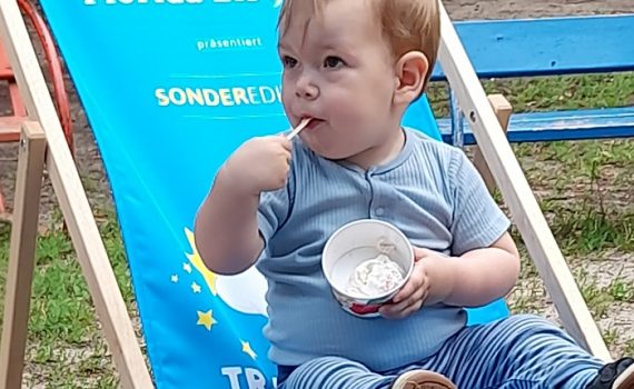 Eis schlemmen im „Grashüpfer“ Am 30. Juni machte die Florida Eis-Tour Station in unserem „Grashüpfer“. Die Kinder freuten sich riesig und schlemmten genüsslich. Das Wetter spielte mit, sodass gemütlich in Sonnenliegen und auf Bänken im Garten Eis geschleckt werden konnte. Herzlichen Dank an Familie H., welche die Einrichtung bei Radio TEDDY für die Tour 2023 angemeldet hat!