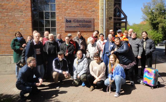 AWO-Theaterlinge in Wolfenbüttel Erfolgreich haben die „AWO Theaterlinge“ die Qualifizierungsreihe „Theater der Vielen – Theater Inklusiv“ unterstützt. Die Qualifizierungsreihe der Bundesakademie Wolfenbüttel richtete sich an theaterschaffende Menschen mit Interesse an der Initiierung, Anleitung und Durchführung inklusiver Theaterprojekte. In vier Modulen widmete man sich den Fragen und Aspekten der Anleitung und Beförderung gemeinsamer, performativer Gruppenprozesse sowie dem Kennenlernen und Ausprobieren inklusiver Theaterpraxen. Die „AWO Theaterlinge“ konnten hier als Kreative von ihrem Schaffen berichten und, dem Inklusionsgedanken folgend, den Teilnehmern/-innen die Möglichkeit geben, von ihrem jahrelang gewachsenen Erfahrungsschatz zu partizipieren. Sie konnten zeigen, wie Schauspieler*innen mit Beeinträchtigung den Zugang zur Theaterkunst, zum Publikum und zu ihren jeweiligen Rollen finden, dies in enger Zusammenarbeit mit den ausgebildeten Anleitern der Gruppe. Das Modul „Eine Probe mit den Theaterlingen“ zeigt ein Beispiel inklusiver Theaterarbeit aus dem soziokulturellen Bereich. Fragen wie: „Was sind Voraussetzungen für das Gelingen inklusiver Theaterarbeit?“, „Welcher Rahmen muss für welches Projekt geschaffen werden?“, „Wer spricht für wen?“, „Was gibt es für Netzwerke?“, „Wie lässt sich mit Inklusion das System Theater neu denken?“ können bei dieser Veranstaltungsreihe, gemeinsam mit den Akteuren der inklusiven Theaterwelt besprochen werden. Hier ein Einblick von der Reise, geschrieben von Wolfgang R., einem Teilnehmenden der „Theaterlinge“: „Ich war einer von acht Theaterlingen, die mit nach Wolfenbüttel fahren durften. Wir trafen uns alle in der Falkstrasse. Da kamen 2 Busse, die uns nach Wolfenbüttel gefahren haben. Außer Ani (Leiterin der Theaterlinge), sie ist mit dem Zug vorgefahren. Wir wurden auf 2 Busse aufgeteilt, je 4 Theaterlinge und eine Begleitperson. Ich habe alle nach der Fahrt befragt: Sylvia erzählte, sie hat sehr viele, schöne und gute Erfahrungen gesammelt und neue Freunde gefunden. Heidi erzählte, dass ihr die Organisation gut gefallen hat. Egal, wo man Hilfe gebrauchte. Sie war immer da. Mathias erzählte, ihm hat es gefallen, und die Betten waren nicht zu klein. Michael erzählte mir, ihm hat es gefallen, dass er neue Menschen kennenlernen durfte. Das Frühstück und Abendbrot waren ausgiebig. Die Zimmer waren ohne Stopperfallen. Er fand die Zeit nur zu kurz. Hassan erzählte: Er fand die Busfahrt toll. Er fand die Unterkunft gut. Ani erzählte mir, dass es ein ganz besonderer Ausflug war und sie gern wieder einmal mit den Theaterlingen unterwegs sein möchte. Heinz war voller Begeisterung: Super, tolle Reise. Noch einmal sowas! Meine (Wolfgang) Eindrücke sind: Toll, jederzeit wieder, ich habe andere Theaterleute kennengelernt und viele Erfahrungen gesammelt, und ich habe auch den Wunsch, alles bei den Proben der Theaterlinge auszuprobieren.“