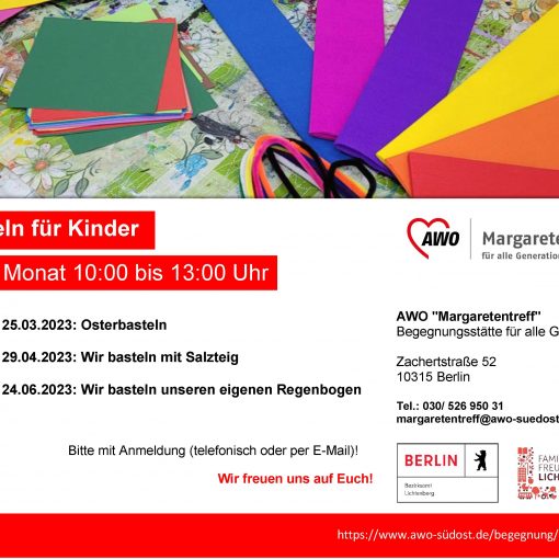 Im Februar werden im Familienzentrum im „Haus der Begegnung Fennpfuhl“ Tontöpfe gestaltet und mit Frühlingsblühern bepflanzt. Kommt gern vorbei! Die Teilnehmendenzahl ist begrenzt, wir bitten um Anmeldung: familienzentrum@awo-suedost.de
