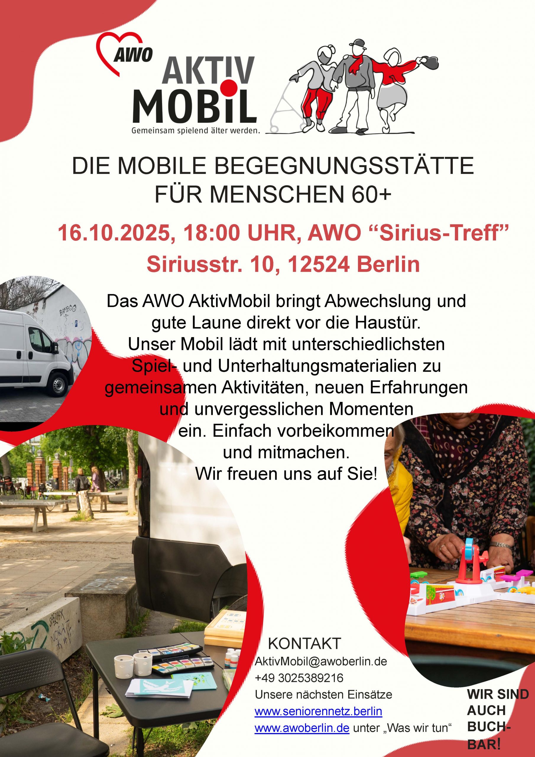 16.10.: Das Aktivmobil macht Station im „Siriustreff“ Am Donnerstag, 16. Oktober, macht das AWO-Aktivmobil Station im „Sirius-Treff“. Die Mobile Begegnungsstätte für Menschen […]