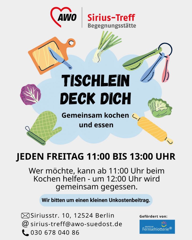 Wer mag, kann ab 11 Uhr beim Kochen helfen, gemeinsam gegessen wird um 12 Uhr. Herzliche Einladung!